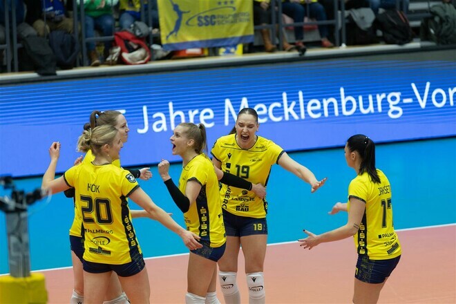 «Пальмберг Шверін» без проблем розібрався з «Флахтом» у 19-му турі Бундесліги Команда «Пальмберг Шверін», у складі якої виступає гравчиня збірної України Анна Артишук, здобула переконливу перемогу у рамках 19-го туру регулярного чемпіонату Німеччини з волейболу, обігравши «Флахт». Господарі майданчика контролювали перебіг усіх трьох сетів і здобули впевнену перемогу з рахунком 3:0. У перших двох сетах «Пальмберг» переважав суперниць як у грі на сітці, так і в атаці. Анна Артишук також зробила вагомий внесок у результат команди, набравши 5 очок. Після цієї перемоги «Пальмберг Шверін» займає друге місце в турнірній таблиці, відстаючи від лідера на 8 очок. Бундесліга. Жінки. 19-й тур, 13 лютого Пальмберг Шверін – Флахт – 3:0 (256:12, 25:12, 25:19)