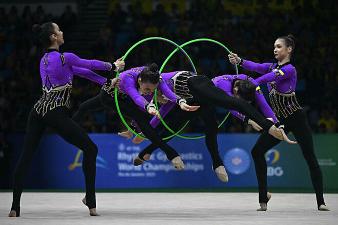 Синьо-жовта команда виграла вправи з трьома м’ячами та двома обручами Збірна України завершила чемпіонат світу 2025 з художньої гімнастики у бразильському Ріо гучною перемогою у День незалежності. У фіналі вправ з трьома м'ячами та двома обручами, який став останнім у програмі турніру у Ріо-де-Жанейро, українки вибороли золоту медаль. Склад чемпіонок світу: Єлизавета Азза, Діана Баєва, Кіра Ширикіна, Олександра Ющак та Валерія Перемета. Синьо-жовта команда піднялася на вершину, набравши 28.650 балів. Це дозволило обійти господарок турніру, збірну Бразилії, лише на 0,1 бала (28.550). Третє місце посів Китай (28350). ВІДЕО. Золотий виступ українських гімнасток у бразильському Ріо